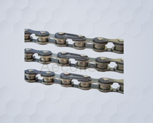 P.I.V. ( Positively Infinitely Variable ) Chain links contains packs of hardened steel slats which slide freely from side to side to conform with grooves in the wheel faces. This unique self forming tooth capability results in positive no slip transmission and long chain life. PIV Chain is mostly used in PIV Gearboxes.