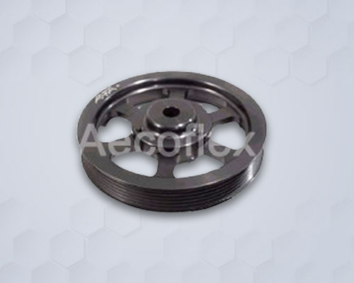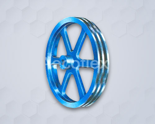 V-Belt Pulley Or V-Groove Pulley. This Pulley is also known as aara or Light weight Pulley. This is used to transmit power for low weight. These are normally used where rotation is less and moving part connected to output shaft is very light. Pulleys are made from normally cast iron.